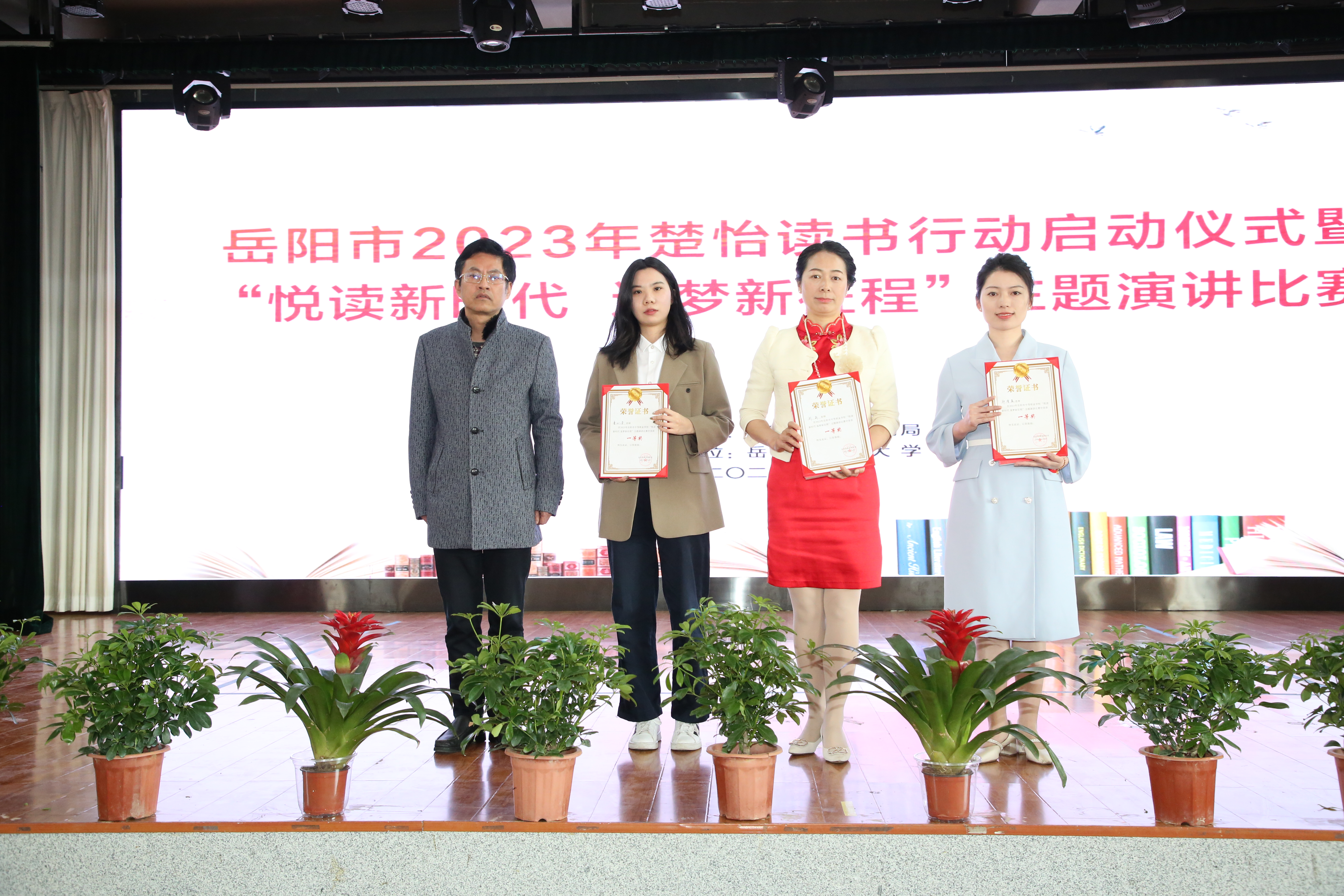 在主题演讲比赛中,来自27所中职学校(含技工学校)的教师和学生选手围绕《湖南省职业院校推荐书单(2023年度第一批)》中的自选书目,结合生活、学习经历,以饱含深情的陈词和落落大方的姿态,充分展现出我市职教师生以书为友、奋发有力的精神风貌。经过激烈的角逐,来自岳阳市第一职业中等专业学校的郑清泉、中南工业学校的李沁芳、临湘市职业中专的刘莉等3名教师获得了教师组一等奖,岳阳市网络工程职业技术学校李瑞雪、平江县璐璐艺术职业学校的喻情、岳阳市湘北女子职业学校的张嘉怡、岳阳县职业中等专业学校的罗佩瑶、岳阳市网络工程职业技术学校的彭子豪等5名同学获得学生组一等奖。